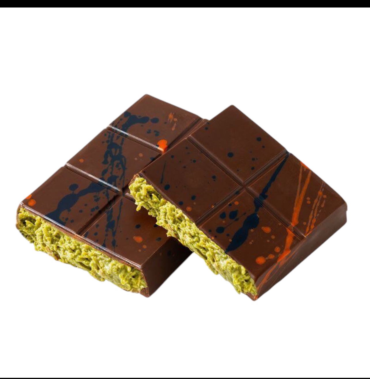 Nuestro Chocolate de Dubái ; es una obra maestra de la repostería fina. Elaborado con el exclusivo chocolate Valrhona, que contiene un 36% de cacao, ofrece una textura suave y un sabor equilibrado que se combina a la perfección con la riqueza de la mantequilla de cacao. Cada bocado es una sinfonía de sabores, complementada por el delicado crujido del pistacho natural y el toque exquisito de la masa kataifi, que aporta una experiencia crujiente y única. Ideal para los paladares más exigentes, este postre es un viaje de lujo en cada bocado.